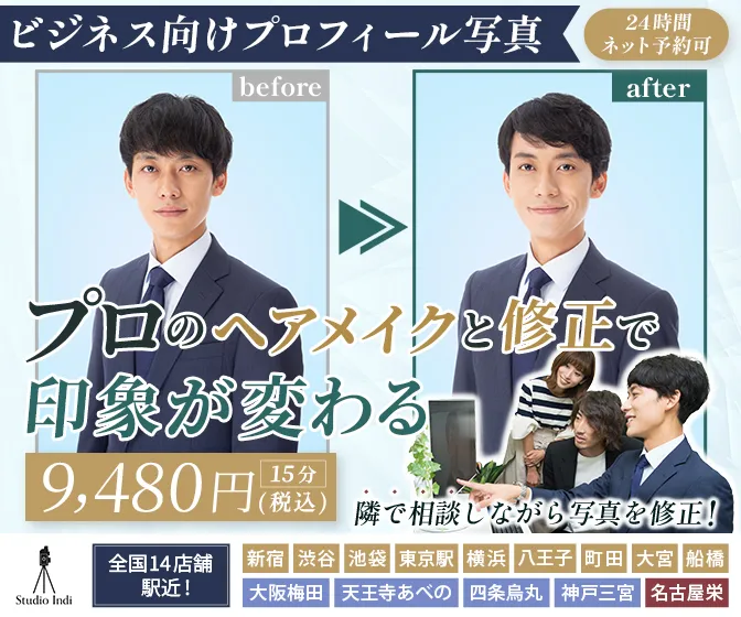 質の高いビジネスプロフィール写真を用意したいという方は、ぜひスタジオインディの利用をご検討ください。